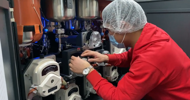 駐守北京的運維團隊對北京地區15家門店進行每日的設備點檢排查及周維護保養,包括自動配鍋機、無人清洗線和出菜機等設備。他們事無巨細,除了按照維護手冊對設備進行檢查外,還結合設備運行的狀態,有針對性的對問題點進行排查,比如出水口角座閥水垢堆積情況排查,出料精度檢測,粉/干/渣供料機出料花頭物料出口情況檢查,干料滑臺氣缸排查,以及落料滑道是否干凈、整潔,加水花灑頭注水孔是否堵塞,灌裝嘴是否全部安裝、無松動,液料蠕動泵的合泵狀態,頂升托盤阻擋塊有無松動破損,一體機停機報警信息,隔離托盤擺出狀態等等。而這些僅僅是每天的日常排查,若出現問題,開發人員也將立刻參與進來,共同進行問題排查與維修。