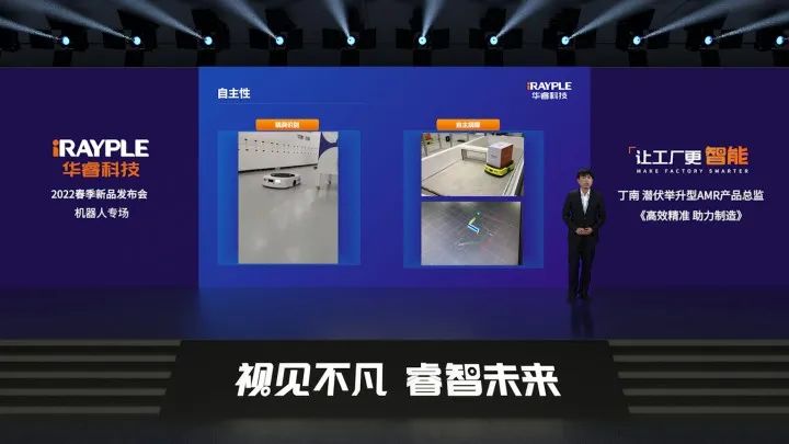 華睿科技潛伏舉升型AMR產(chǎn)品總監(jiān)丁南在本次發(fā)布會上以“高效精準(zhǔn) 助力制造”為主題的演講。他表示:“潛伏舉升型AMR作為目前業(yè)內(nèi)最常用的AMR類型,通過不斷挖掘不同行業(yè)客戶的需求,除了滿足原有的電商倉儲行業(yè)外,在新能源,汽配,屏顯,重工等行業(yè)也得到了廣泛的應(yīng)用。”全新推出的新一代600KG潛伏舉升型AMR,在續(xù)航,效率上較上代產(chǎn)品得到了大幅提升,同時通過安全傳感器、識別算法、導(dǎo)航算法、調(diào)度算法的智能融合,實現(xiàn)了整車的360°避障和立體避障,加強了產(chǎn)品安全性,模塊化設(shè)計,可根據(jù)實際項目、場景需要,靈活調(diào)整產(chǎn)品配置,滿足不同行業(yè)客戶的需求,升級了多種實施工具,降低了現(xiàn)場實施、維護設(shè)備的難度,讓用戶使用更簡單。