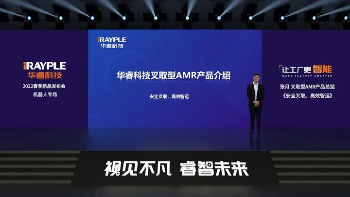 華睿科技叉取型AMR產(chǎn)品總監(jiān)張月在本次發(fā)布會上帶來了“安全叉取,高效智運”為主題的新產(chǎn)品介紹。他表示“隨著叉車無人化率的不斷提升,托盤和物料的無人化轉(zhuǎn)運場景越來越多樣化。為了更好的適應(yīng)場景多樣化,提高倉庫容積率和運行安全。全新推出的窄通道堆高式叉取AMR,在取貨通道,安全防護,智能感知等方面全面升級。成熟應(yīng)用于鋰電、包裝、3C等行業(yè)的物料搬運及堆高場景。在安全性,穩(wěn)定性,高效率等方面得到了多場景的驗證。”