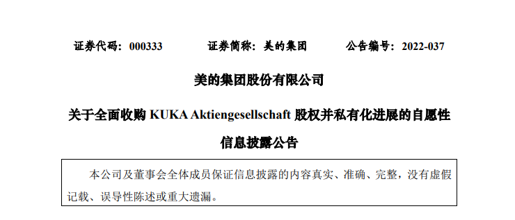 2022年3月,美的集團(tuán)發(fā)布公告稱,根據(jù)德國當(dāng)?shù)叵嚓P(guān)法律法規(guī)的要求,本次收購的價(jià)格以評(píng)估方式確定,經(jīng)評(píng)估,本次收購價(jià)格為 80.77歐元/股,合計(jì)收購總價(jià)款為15,052.25萬歐元。