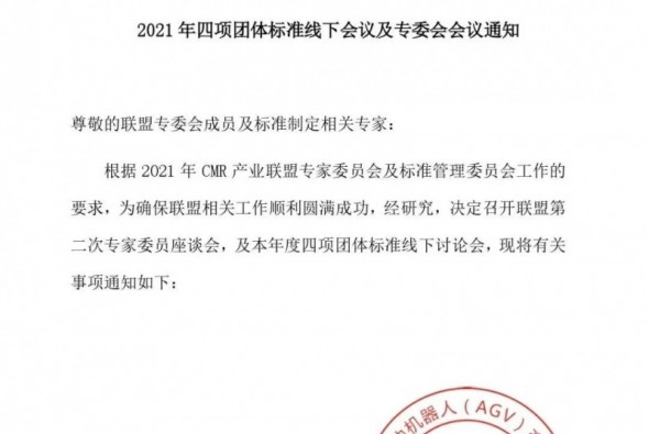 關(guān)于召開工業(yè)應(yīng)用移動機器人2021年四項團體標準線下會議及專委會會議的通知