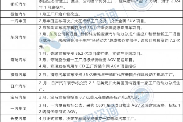 2023上半年汽車行業(yè)投資擴產(chǎn)及AGV項目招標情況分析