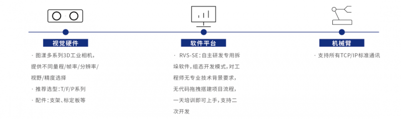 圖漾3D視覺(jué)引導(dǎo)軟包拆垛方案主要由圖漾核心自主專利的3D工業(yè)相機(jī)、深度學(xué)習(xí)算法及RVS-SE軟件、機(jī)械臂(可選)、工業(yè)PC等共同構(gòu)成。
