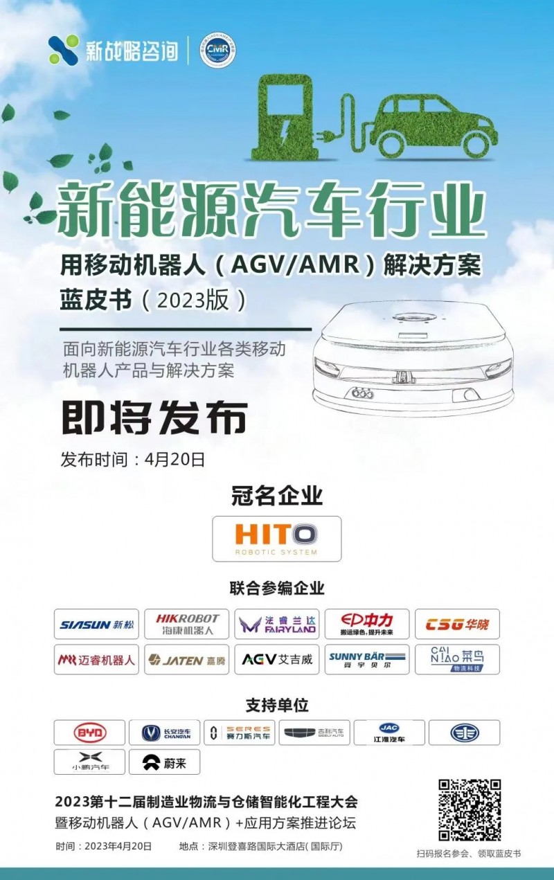 《新能源汽車(chē)行業(yè)用移動(dòng)機(jī)器人(AGV/AMR)解決方案藍(lán)皮書(shū)(2023版)》是CMR產(chǎn)業(yè)聯(lián)盟與新戰(zhàn)略移動(dòng)機(jī)器人產(chǎn)業(yè)研究所聯(lián)合出版的關(guān)于新能源汽車(chē)行業(yè)工業(yè)移動(dòng)機(jī)器人(AGV/AMR)產(chǎn)品應(yīng)用現(xiàn)狀、市場(chǎng)痛點(diǎn)、技術(shù)路線、主流企業(yè)、發(fā)展趨勢(shì)等詳細(xì)內(nèi)參的藍(lán)皮書(shū)。藍(lán)皮書(shū)將面向全行業(yè)發(fā)行,重點(diǎn)向新能源汽車(chē)本體制造商、集成商、軟件服務(wù)商、政府投研等領(lǐng)域發(fā)行。