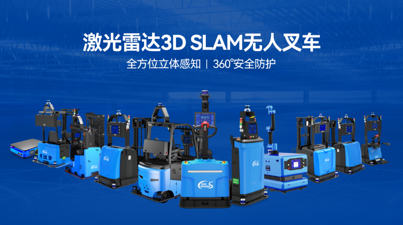 ·2023年,鐳神智能推出多款適應不同場景的3D SLAM無人叉車:輕量搬運式無人叉車、窄通道堆垛式無人叉車、室內平衡重式無人叉車等。