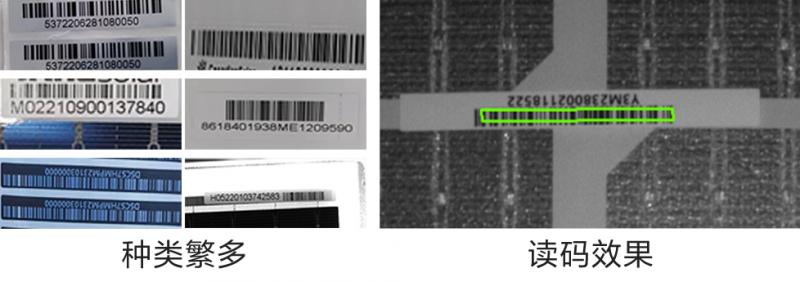 需求:電池片敷設(shè)背板或背玻后,表面會貼附標(biāo)簽碼用于后續(xù)工序的追溯管理,單玻組件貼在背板上,雙玻組件貼在毛玻璃上,需要在組件運(yùn)轉(zhuǎn)過程中讀碼。