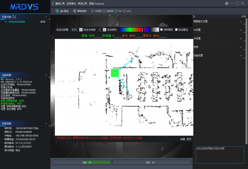 上位機(jī)軟件具備建圖功能:地圖管理、離線(xiàn)仿真、日志管理和實(shí)時(shí)顯示等。無(wú)論是地圖切換、下載還是上傳,一鍵即可完成。