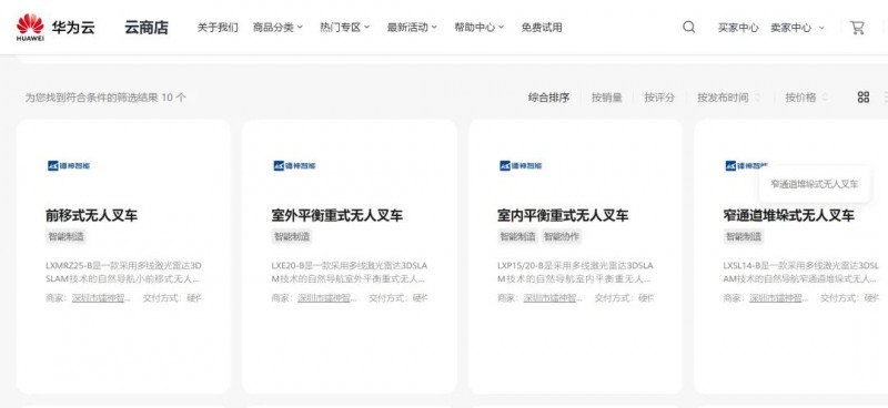 鐳神智能陸續將無人叉車系列產品、高性能激光雷達及行業應用解決方案上傳至商城,無論是企業用戶還是個人用戶,均可通過華為云商城享受到便捷的購買體驗,同質的售后服務及技術支持。