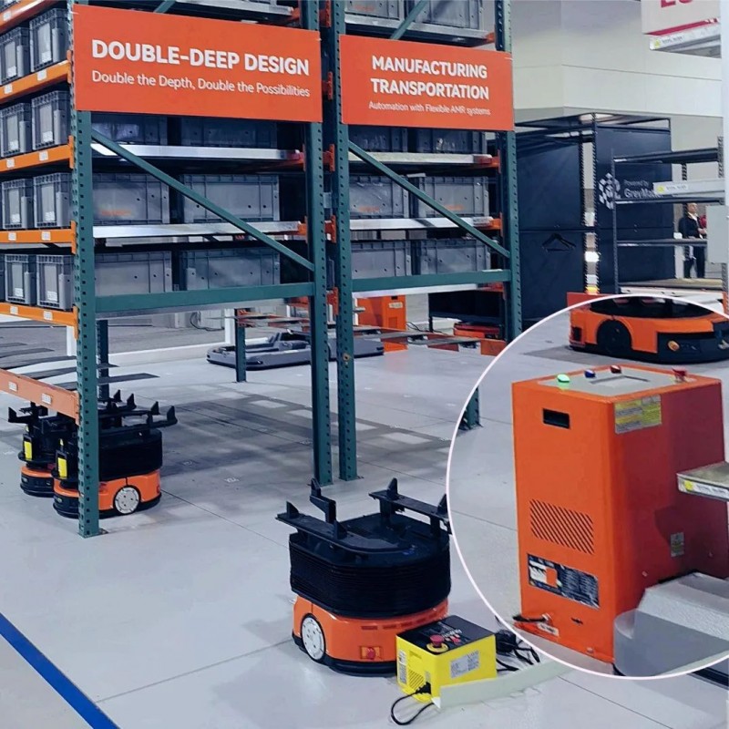 合作伙伴也攜帶了泰坦智能充電機去到展會,給新能源工業(yè)車輛以及移動機器人進行充電。