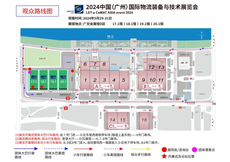 廣州地鐵8號線“新港東站A出口”,步行至廣交會D區展館6號門進入登錄大廳。