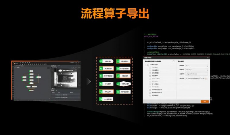 為進一步降低二次開發(fā)難度,VM4.4新增算子導(dǎo)出功能,開發(fā)者可以把搭建好的VM圖形化方案導(dǎo)出成算子接口級的調(diào)用代碼,幫助用戶更快理解VM的算子開發(fā)邏輯,同時減少編碼量。