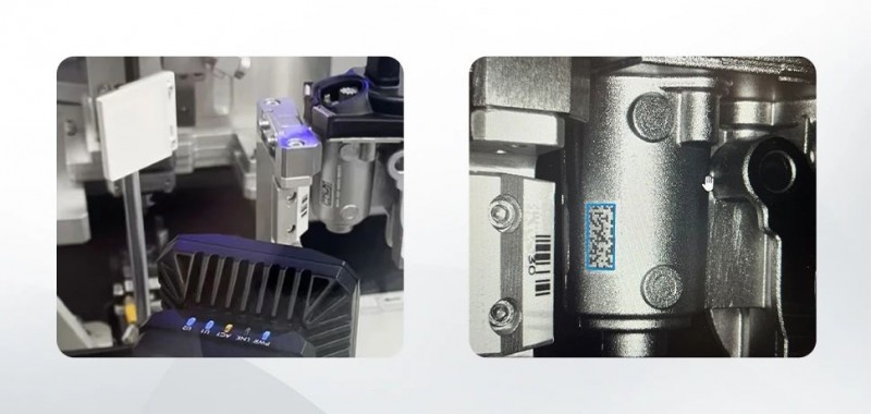 某外資汽配廠家在生產車用壓力閥時,采用激光鐳雕技術在亮面金屬上打印DPM條碼,用于生產質量追溯。然而,正常曝光時,條碼會因反光而影響讀碼的穩定性。為解決這一問題,海康機器人提供了固定式讀碼產品,并可配置偏振配件,有效抑制反光干擾,確保讀碼的穩定性。