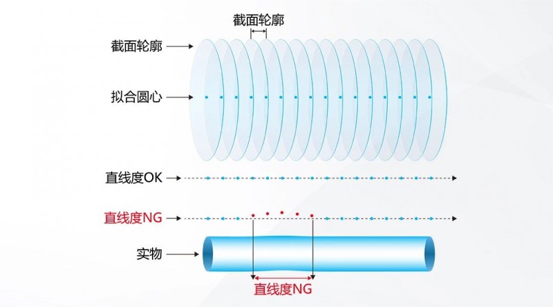 通過(guò)對(duì)截面數(shù)據(jù)的分析,可以計(jì)算出不同截面位置的圓心點(diǎn)坐標(biāo),進(jìn)而實(shí)時(shí)監(jiān)控線纜/管材直線度,當(dāng)圓心坐標(biāo)跳動(dòng)超出一定閾值時(shí),則判定線纜/管材某位置處發(fā)生彎折。