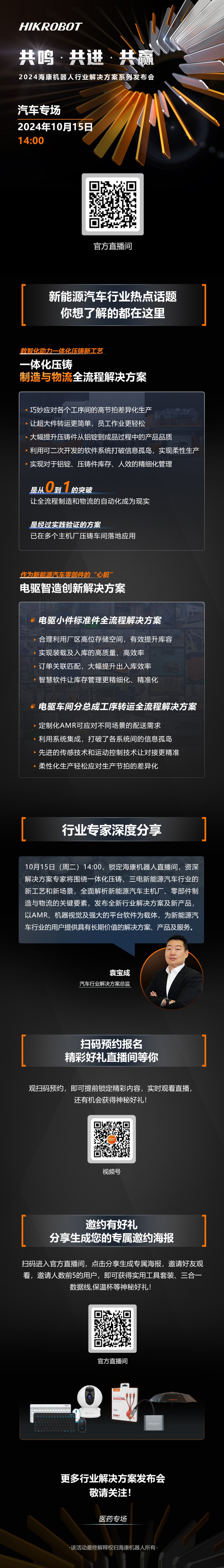 10月15日14:00 鎖定海康機(jī)器人直播間,資深汽車(chē)行業(yè)解決方案專(zhuān)家,將為您深度解析新能源汽車(chē)行業(yè)熱點(diǎn)話(huà)題、創(chuàng)新方案介紹、新品分享、實(shí)時(shí)答疑,干貨滿(mǎn)滿(mǎn),更有精美好禮,等您來(lái)拿!