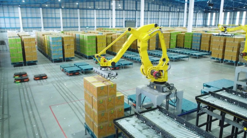 ■ AMR系統(tǒng)與機(jī)械臂對(duì)接,優(yōu)化了貨物入庫(kù)、倉(cāng)儲(chǔ)管理和出庫(kù)的全流程