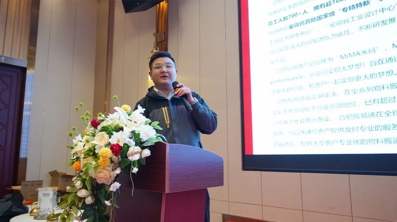 在酒店宣講環(huán)節(jié),合肥搬易通廣州營銷服務中心負責人侯杰介紹了公司的企業(yè)規(guī)模、發(fā)展歷程、全系列物料搬運設備以及超窄通道產(chǎn)品,并表明未來團隊將不斷深化對市場動態(tài)與客戶需求的洞察,提升服務質(zhì)量,力求全方位滿足客戶物料搬運需求。