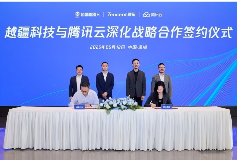 騰訊集團(tuán)高級(jí)執(zhí)行副總裁、云與智慧產(chǎn)業(yè)事業(yè)群CEO湯道生、騰訊云副總裁姚一兆、騰訊云深圳區(qū)域泛政總經(jīng)理張曉漫、越疆科技創(chuàng)始人兼CEO劉培超、越疆科技副總裁曾宇等共同出席簽約儀式。