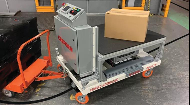 Creform為一家商用車零部件制造商設計并制造了一款牽引式自動導引車(AGV)。AGV拖著手推車在倉庫和裝配區之間來回運送生產零件。