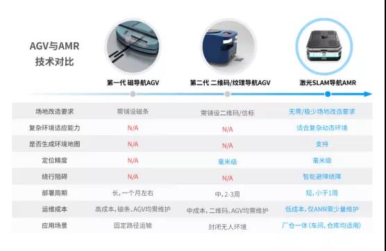 許多泛半導(dǎo)體行業(yè)生產(chǎn)廠家嘗試引入AGV(自動(dòng)導(dǎo)引小車)來實(shí)現(xiàn)自動(dòng)化物流搬運(yùn),但由于車間設(shè)備集群式分布造成的車間空間緊促、設(shè)備對(duì)接需求多樣等難點(diǎn),依靠磁條、二維碼等物理輔助物實(shí)現(xiàn)運(yùn)行的AGV在實(shí)際應(yīng)用中局限較大;當(dāng)產(chǎn)線發(fā)生調(diào)整,AGV如不能及時(shí)完成改造部署,甚至?xí)诱`生產(chǎn),造成更大的經(jīng)濟(jì)損失——柔性物流又從何談起?其實(shí),AGV發(fā)展至今已經(jīng)歷了三次技術(shù)變革。行業(yè)內(nèi)普遍依據(jù)導(dǎo)航方式的不同將其劃為:第一代磁導(dǎo)航AGV,第二代二維碼/信標(biāo)導(dǎo)航AGV,以及第三代自然導(dǎo)航AGV,又稱AMR(自主移動(dòng)機(jī)器人)。