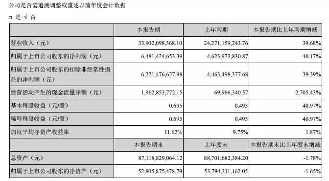 7月24日,海康威視發布2021年半年度報告。在報告中顯示:報告期內,公司實現營業總收入339.02億元,比上年同期增長39.68%;實現歸屬于上市公司股東的凈利潤64.81億元,比上年同期增長40.17%。公司2021年上半年整體毛利率為46.30%。