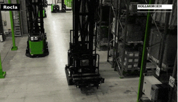 在這個大型倉庫中,Rocla VNA AGV設備應用多種方法導航:主通道中的激光導航和狹窄通道中的感應線導航。Rocla的窄巷道叉車會配備三層桅桿和側向伸縮叉。如果與Rocla的模塊化設計和標準組件配套安裝使用,整個項目的交付時間會比傳統的自動化項目要更短,對于滿負荷運作的三班倒倉庫來說投資回收期也會縮短。