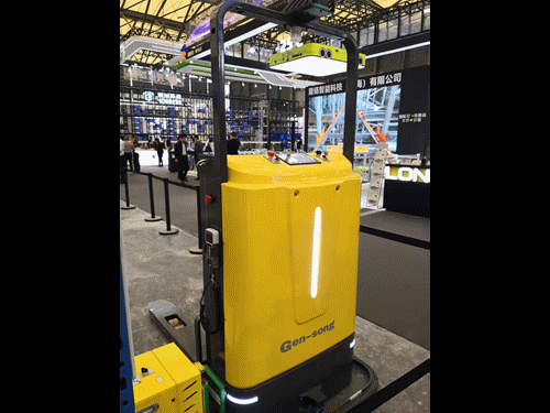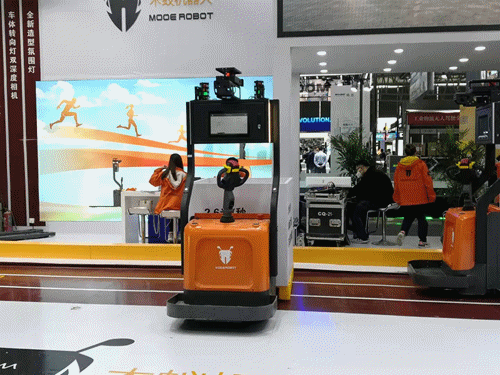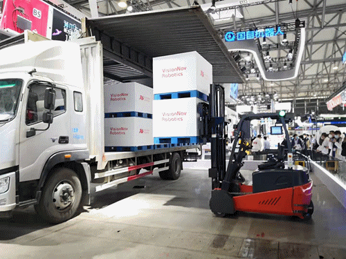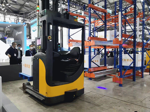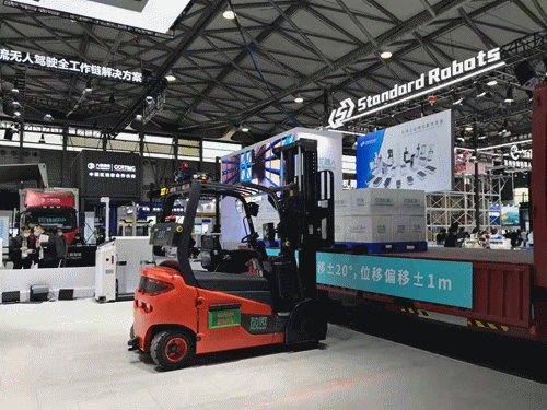 E系列及P系列視覺無人叉車,并現(xiàn)場(chǎng)演示了室內(nèi)外裝卸貨車方案,其在復(fù)雜多變環(huán)境下的峰值工作效率與人工叉車可比擬。