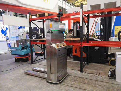 系列無人叉車產(chǎn)品,包括堆高式、平衡重式無人叉車等,并現(xiàn)場(chǎng)演示了月臺(tái)貨車裝卸方案。
