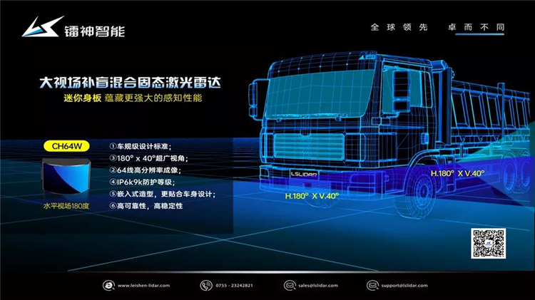 鐳神智能另一重磅新品——大視場補盲激光雷達CH64W,作為專為掃除盲區(qū)設計的產品,CH64W可應用在汽車、機器人、AGV等領域的行駛盲區(qū)監(jiān)測,其擁有180°x 40°的超廣水平視場角,測量精度精確至±3cm,能夠高效識別近距離范圍內的障礙物。與鐳神智能其他功能的激光雷達組合搭配,適配不同應用需求,提供更精確、全面的監(jiān)測感知。