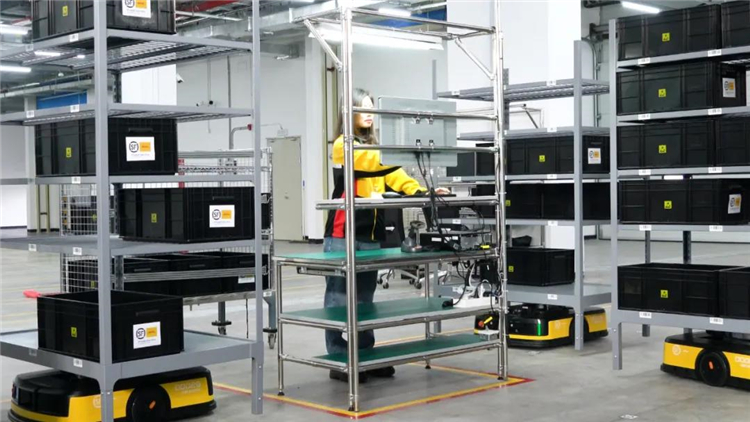 通過(guò)機(jī)器人自動(dòng)將存儲(chǔ)物料搬運(yùn)至指定工作站,整體找貨能力提高30%有余,大幅縮短“人找貨”時(shí)間。