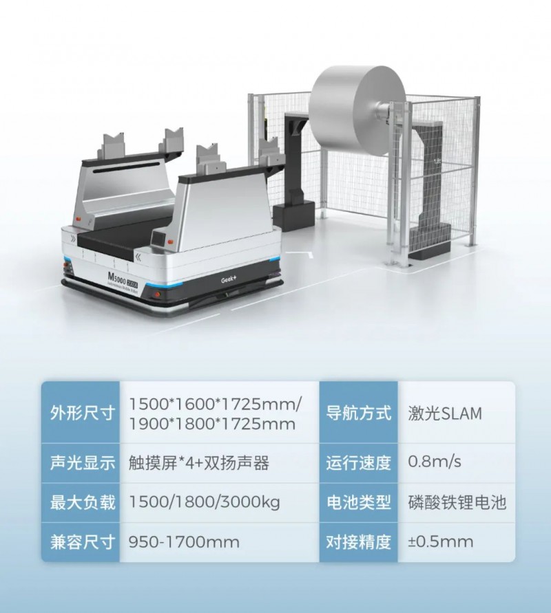前工序搬運的極卷非常重,勞動強度大,人工上下料對接難度大。且產能快速擴張,造成招工難、用工難,人力成本和人工操作安全隱患同比升高,給企業(yè)帶來管理困難和更大的風險。極智嘉雙舉升機器人可搬運最高重達3噸的卷狀物料,且雙排叉臂的結構設計使機器人可在上滿料軸的同時帶走空料軸,一次到達即可完成空滿交換任務,搬運路程減半,效率翻倍、快速節(jié)能。